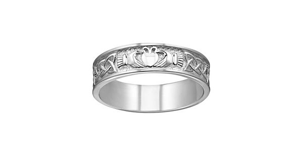 - 15. Sterling Silver Textured Claddagh Wedding Band